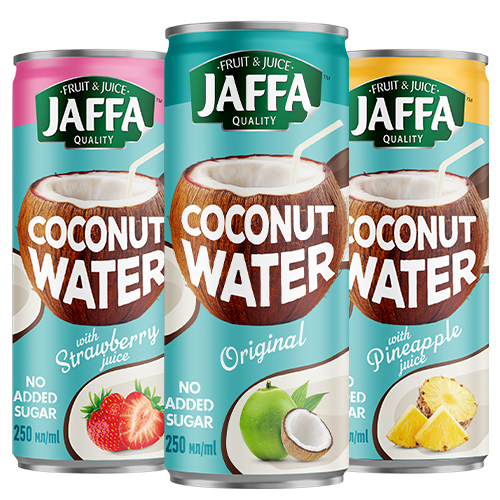 Natural coconut water without added sugar, with pineapple and strawberry flavors.